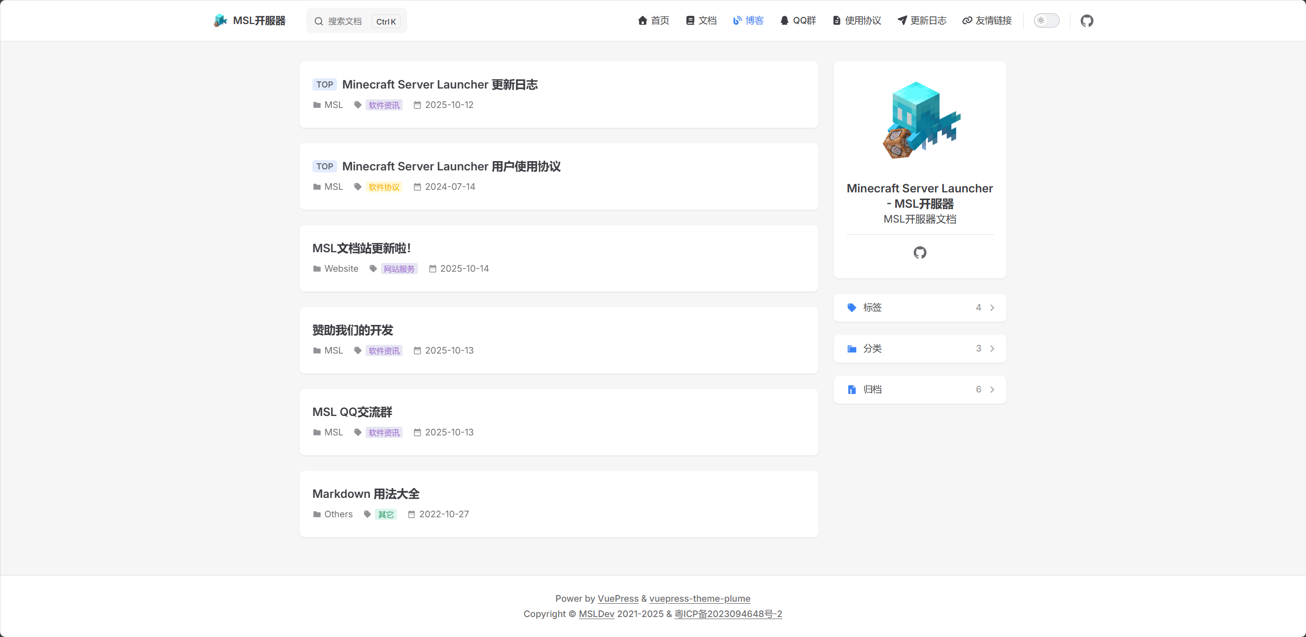 采用 vuepress 和 vuepress-theme-plume 构建生成。